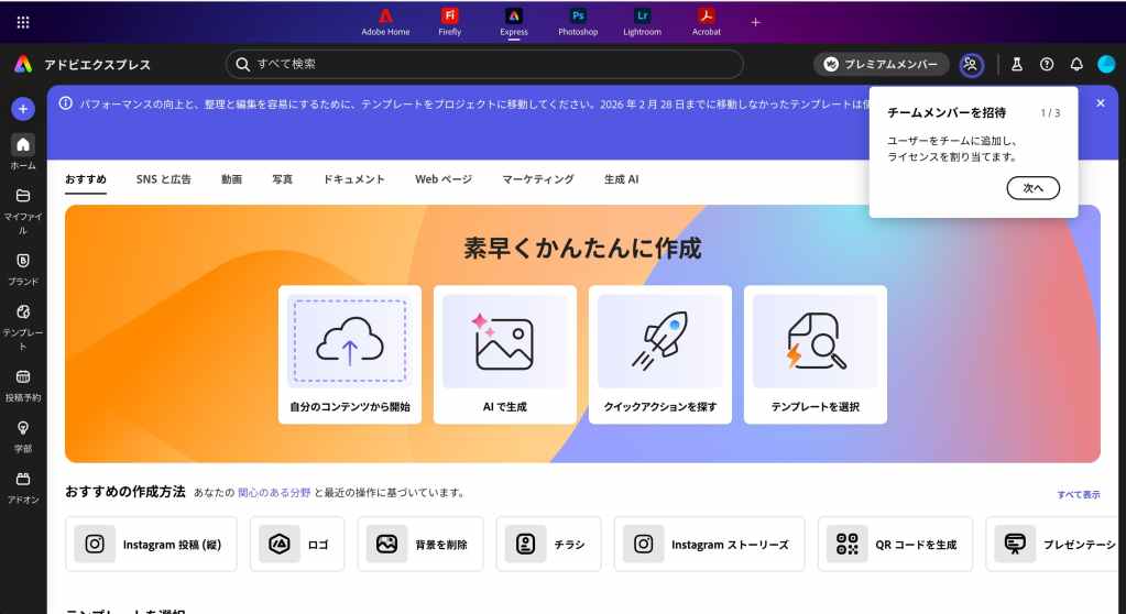 Adobe Expressは無料プランでも基本的な編集ができますが、ロゴ削除や高解像度出力を希望する場合は有料プランの利用が必要です。